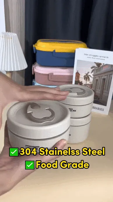 متوافقة مع الميكروويف: تحتوي الأجزاء المصنوعة من الفولاذ المقاوم للصدأ على قسمات قابلة للإزالة، مما يتيح لك إعادة تسخين الطعام بسهولة في الميكروويف.